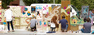 A new mural project is almost finished on the East wall of Louie M's Burger Lust. Diego and Jair, two local urban artists are responsible for bringing the wall to life. Their bold and playful work reflects the efforts to revive the area with color, local history and culture. Check out their work for yourself sometime!